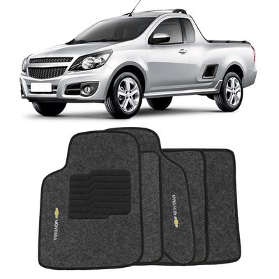 Jogo Tapete Carpete Chevrolet Montana 2010 2011 2012 2013 2014 2015 2016 Grafite Logo Bordado 2 Lados Dianteiro